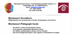 Der Montessori-Basis-Diplomkurs startet am 20. Februar 2026 an der Erich Kästner-Grundschule Altenkirchen/Westerwald. Er ist ideal für alle, die mit Kindern leben oder arbeiten.